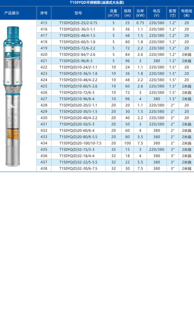 T150YQD不銹鋼泵(油浸式大頭泵)