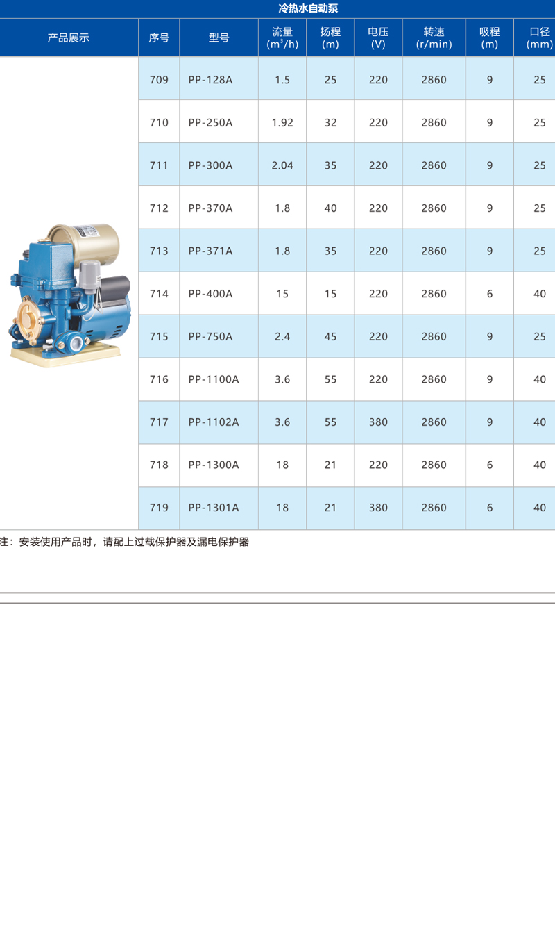 冷熱水自動泵 - 小型家用泵 - 上海人民水泵廠有限公司